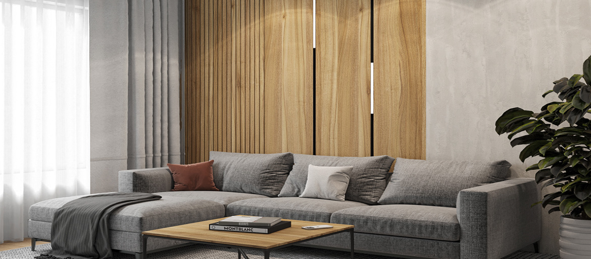 - Гармония форм: Если панели имеют четкие линии, выбирайте обои или штукатурку с более мягкими формами и текстурами для контраста.